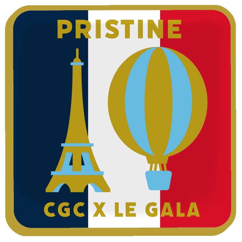 This limited-edition pin was created to commemorate CGC’s presence at 2026 Le Gala in Paris. It features a red, white, and blue design inspired by the French flag, and showcases the Eiffel Tower and a hot air balloon to match our highly sought after Pristine 10 label. Only Le Gala submitters snagged this beauty!